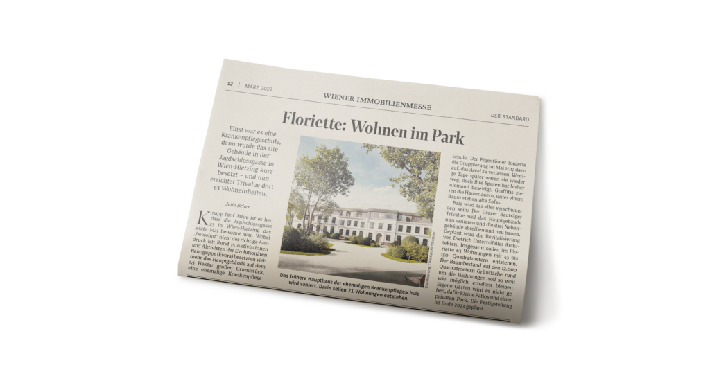 Die TRIVALUE weckt mit dem Projekt „Floriette – Private Park Living“ den 13. Bezirk elegant aus dem Dornröschenschlaf und verschmilzt historisches Flair mit moderner Architektur mitten im Grünen. Für das Projekt von Entwickler Trivalue war unsere Agentur vom Verkaufsstart weg für die kommunikative Begleitung des Neubaus verantwortlich.